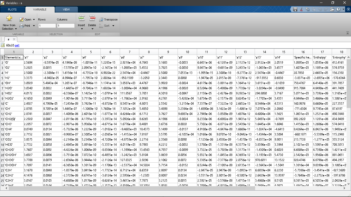 Parsing of the NASA Thermodynamic Data File